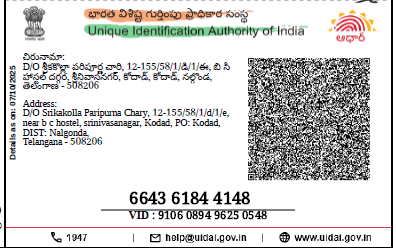 * Residential Address of the Applicant (should be same as in Aadhar card)