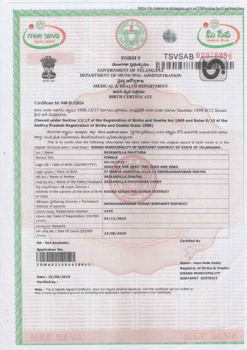 - Birth Certificate Issued by Municipal Authority or any any other authority allowed to issue birth certificates
