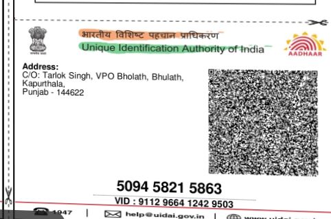 - Aadhar Card