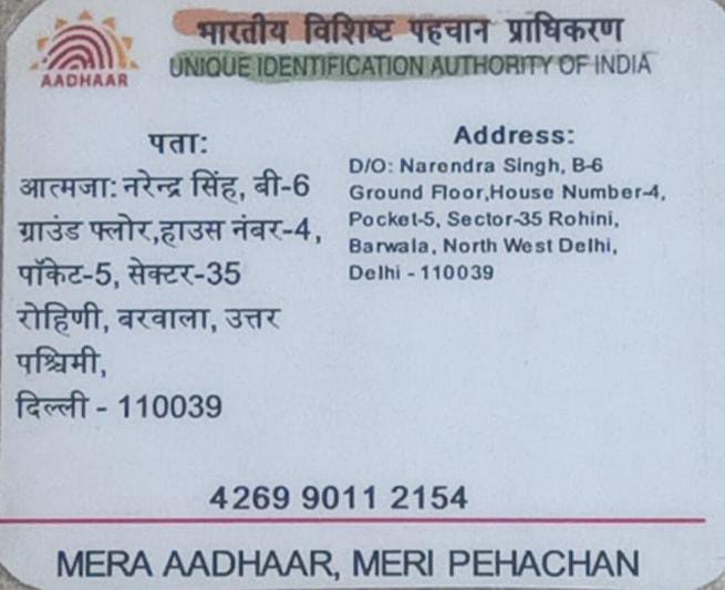 - Aadhar Card