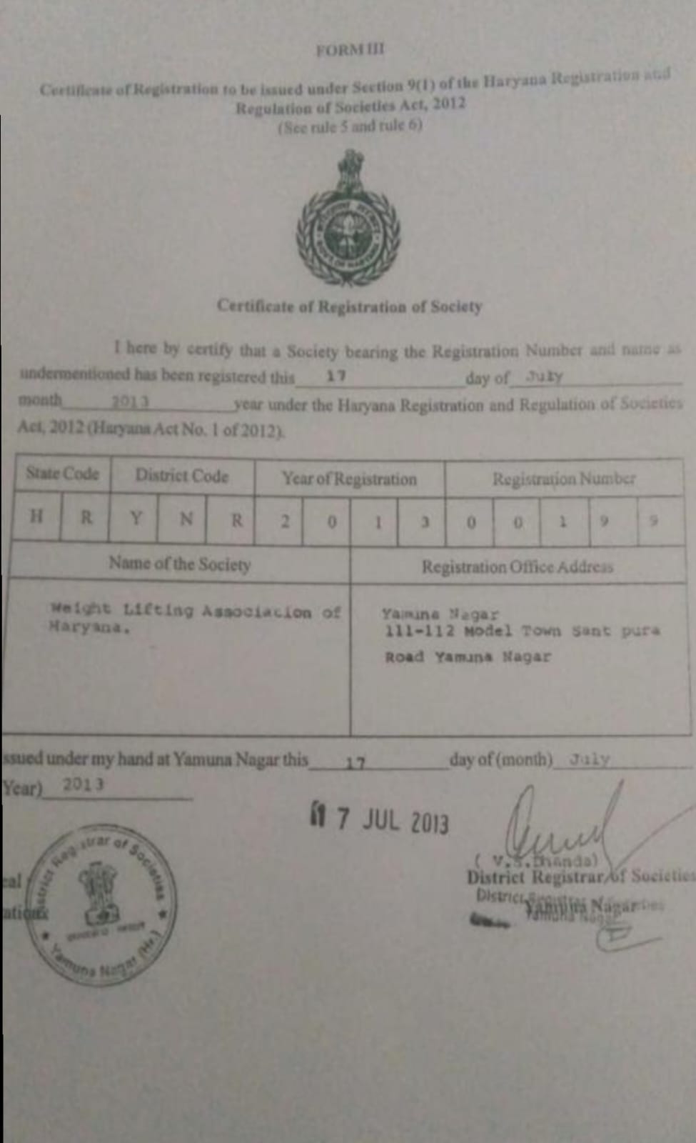 Registration details